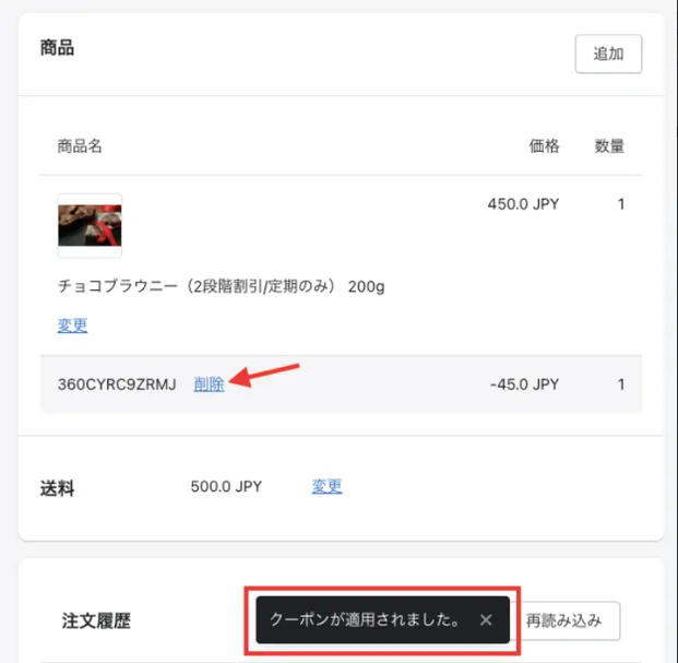 適用後のクーポン削除も簡単に操作できます。