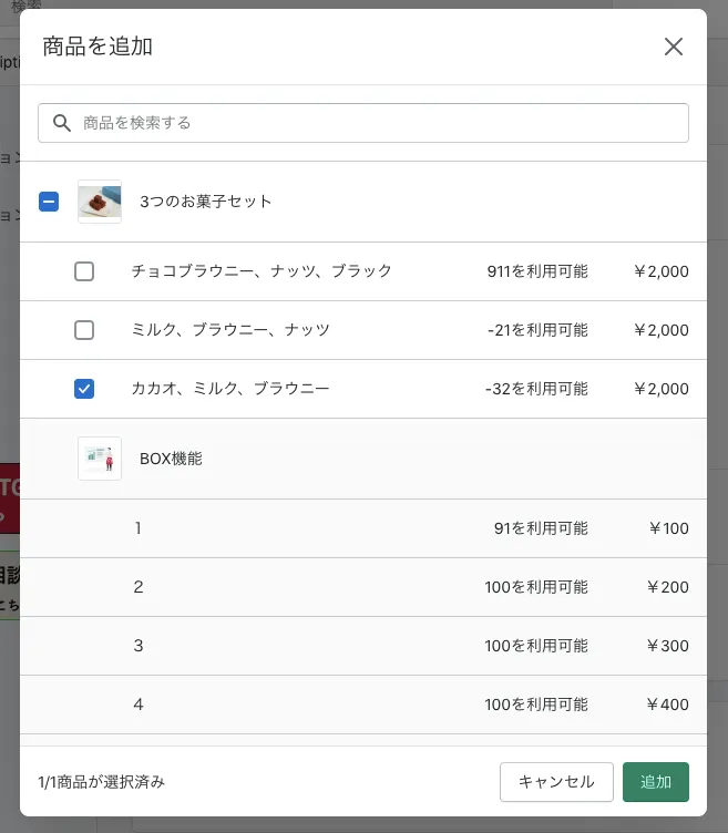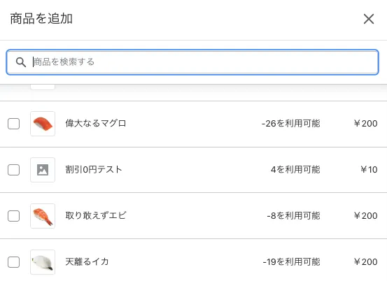 1.商品横の「追加」をクリックします。