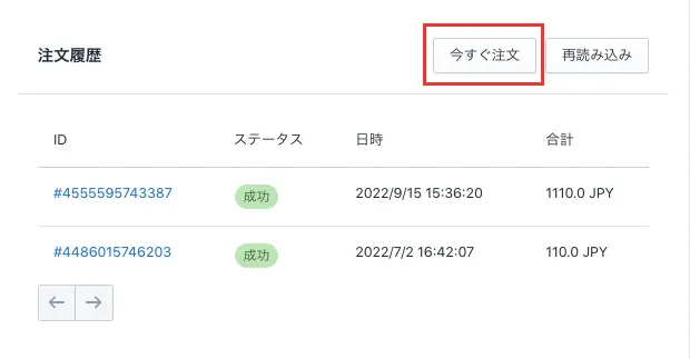 すぐに欲しいというニーズに応えられるよう「今すぐ注文」機能があります。最短での受注発生をさせることができます。(今すぐ注文ボタンを押したあと、Shopify注文管理に受注データが発生します)