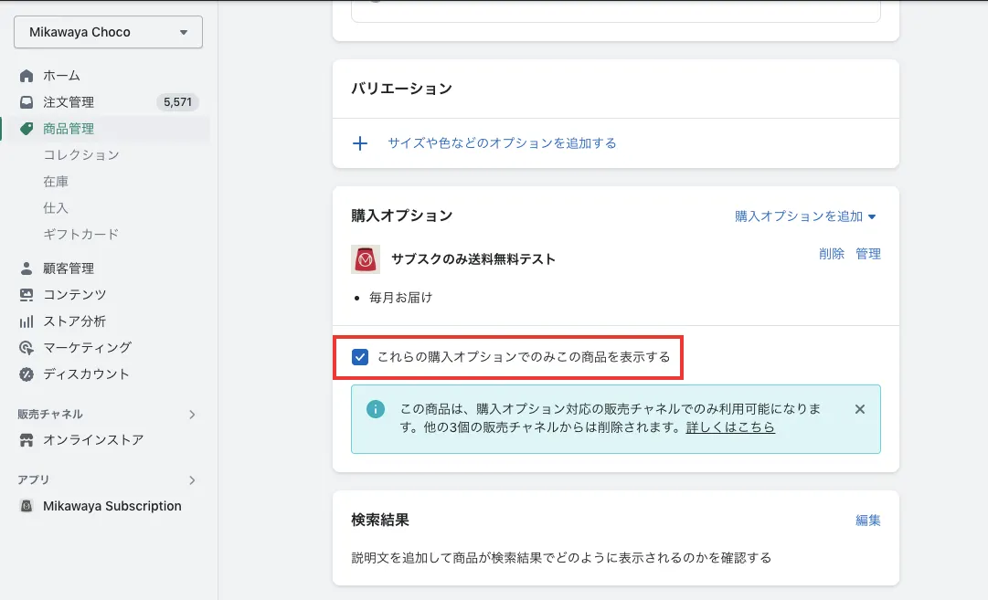 Shopify商品管理画面からサブスクリプショングループを紐付ける場合