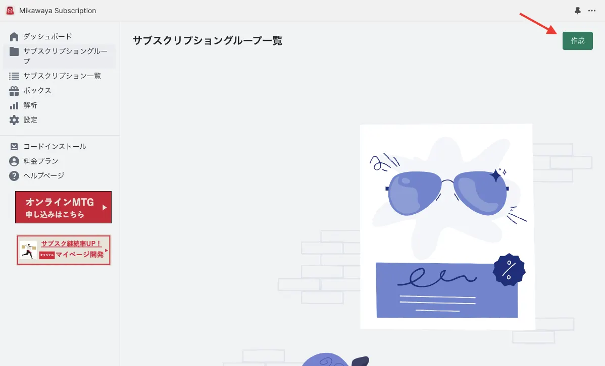 1.アプリ左側から「サブスクリプショングループ」をクリック