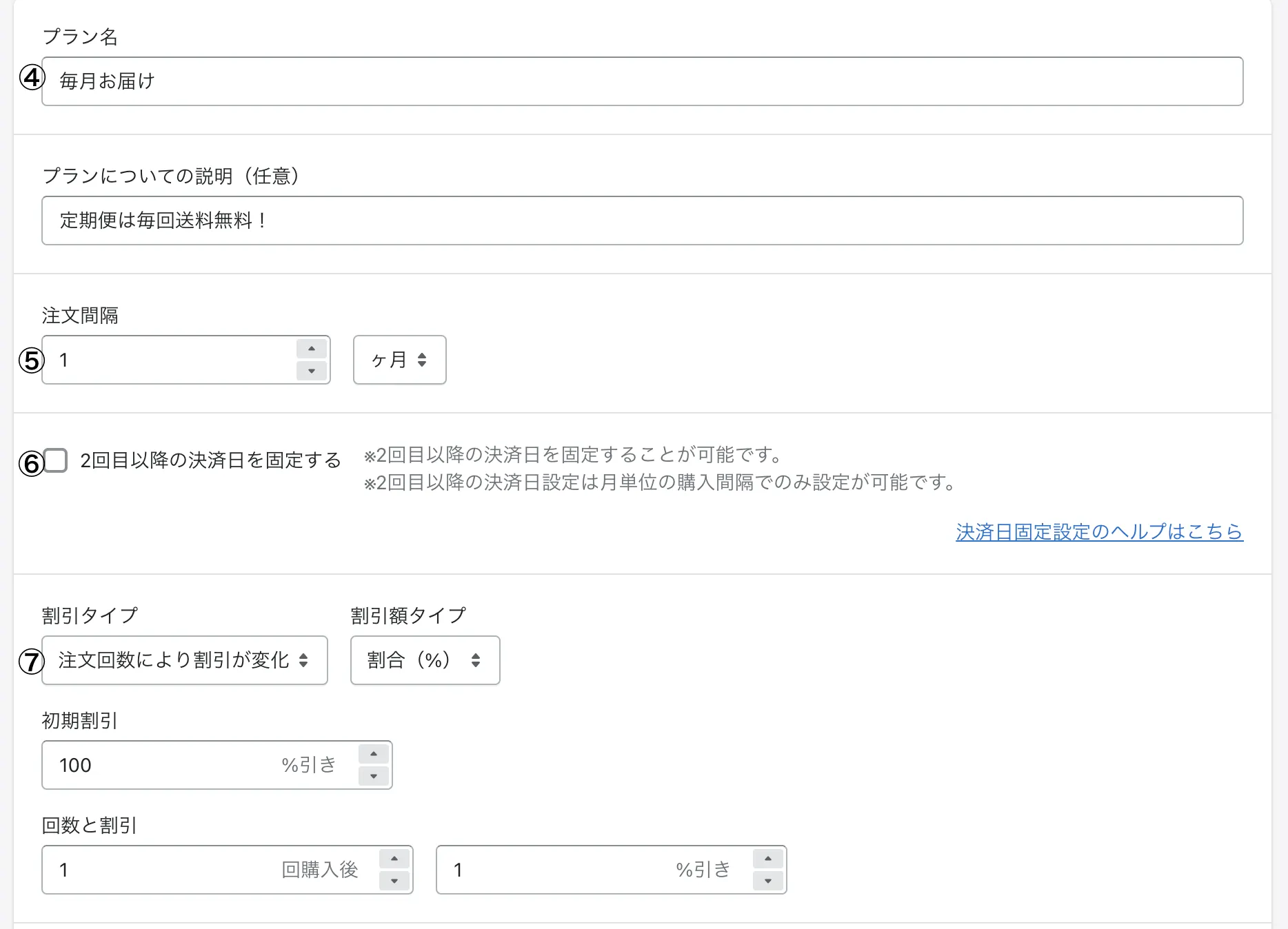 【例】定期便の購入縛りを3回にする場合には「3」を入力します。