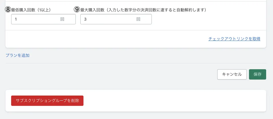 デフォルトでは無制限となっておりますが、3回目や6回目などで自動解約を行いたい場合に設定いただく箇所です。【3】と入力した場合3回目の自動決済完了後、ストア側の操作やお客様の操作が必要なく自動で解約ステータスに切り替わります。