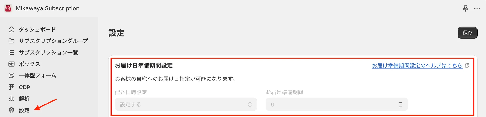 Mikawayaアプリ>設定>お届け準備期間設定を「設定する」にしていただく必要があります。