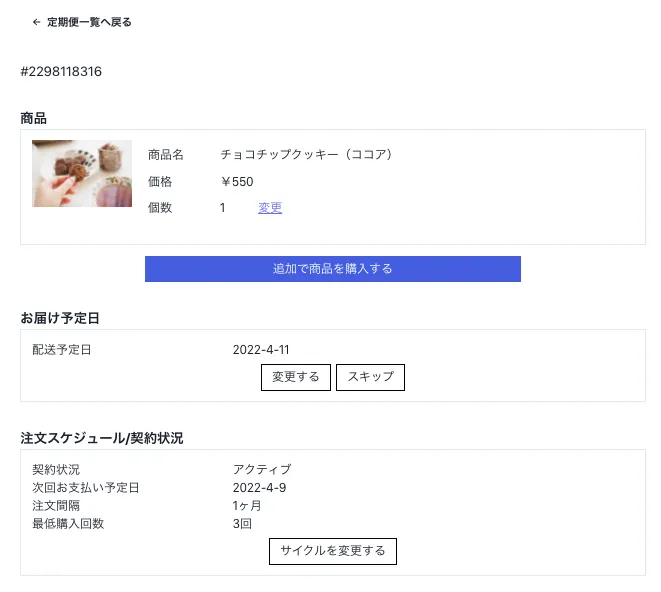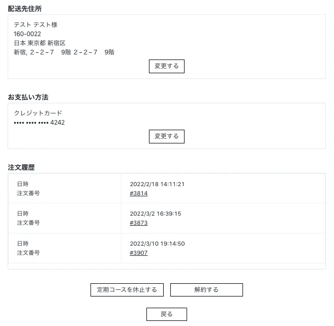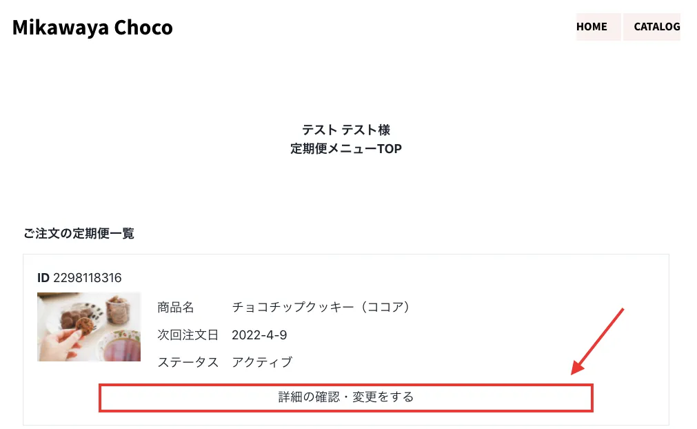 7、注文詳細ページにて変更手続きなどが行なえます。