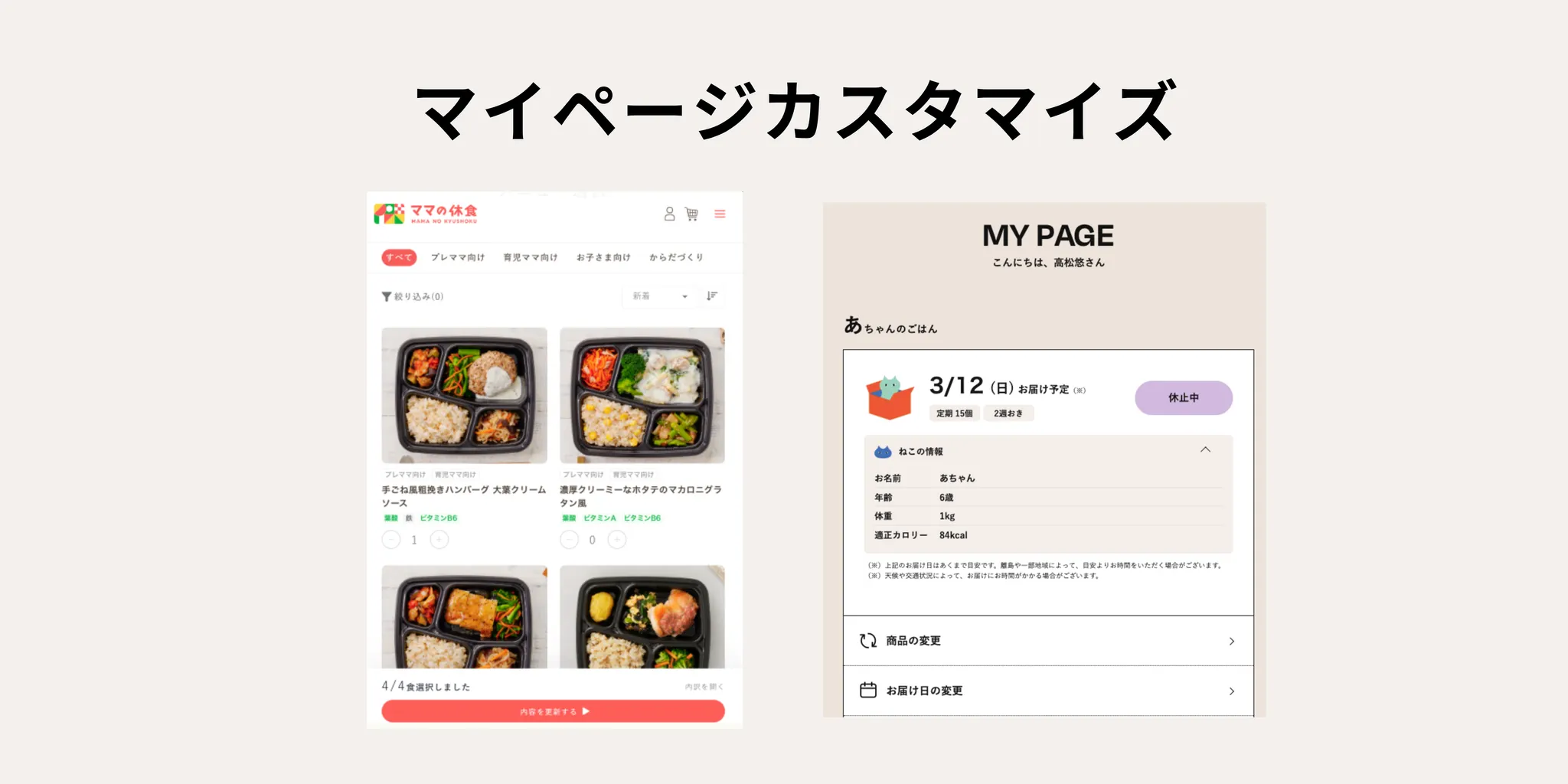 ママの休食様の事例では、マイページ内でBOX型のサブスク商品が購入できる仕様になっています。