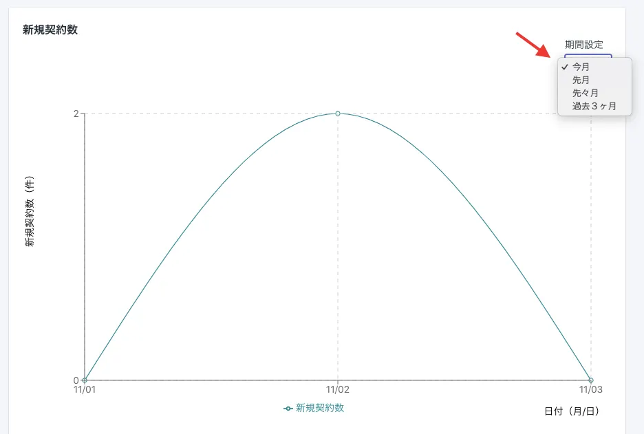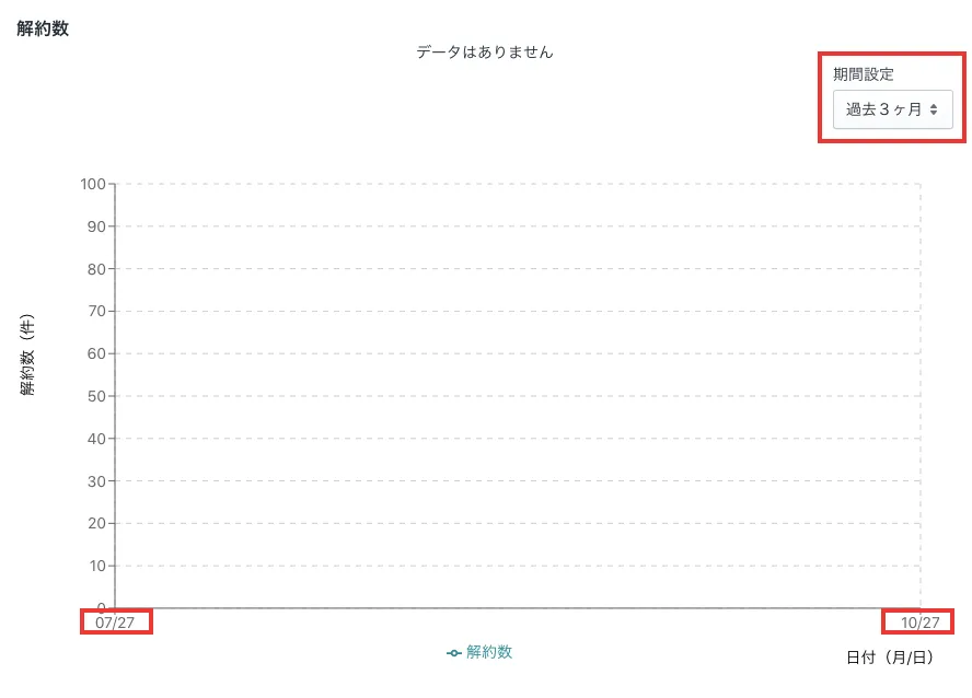 2022/11/1以降の「新規契約数」「解約数」などとなります。機能アップデート前のデータはグラフに反映されません。