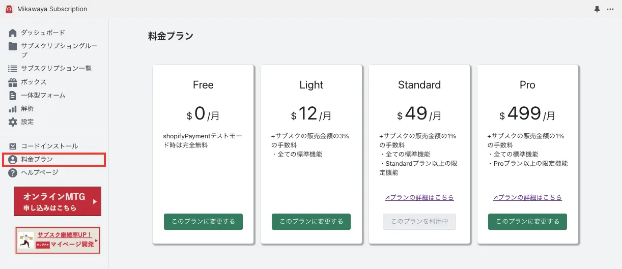 ※ライトプランからスタートされる場合、1ヶ月のサブスクの売上が17.18万〜でスタンダードプランに切り替える方が多いです