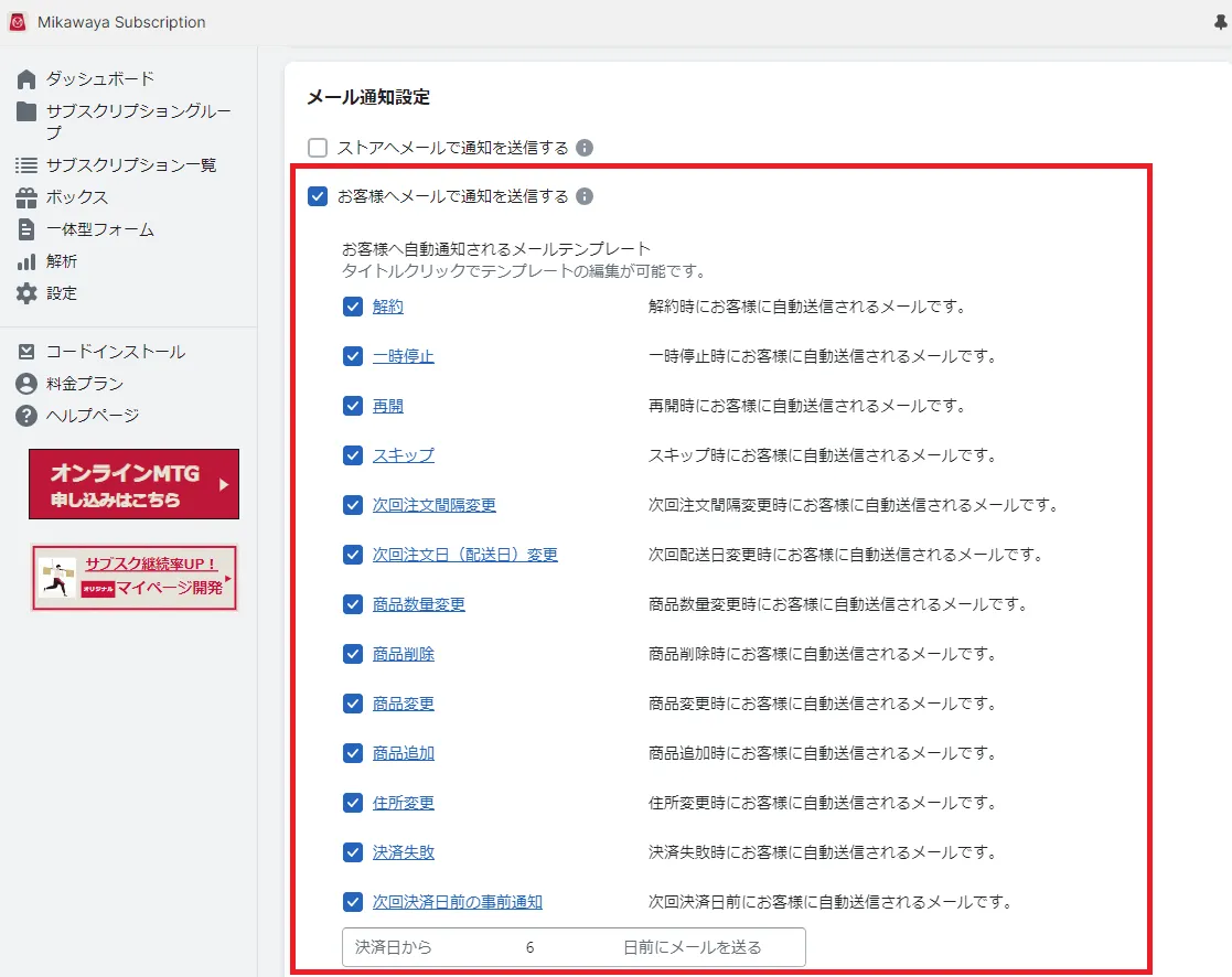 マイページ機能(解約/停止/商品変更/スキップなど)