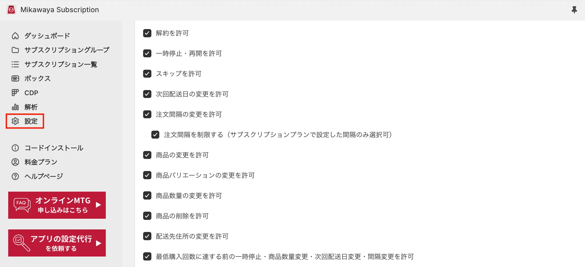 2025年1月にリリースされた新機能「注文間隔を制限する」は、Mikawayaアプリ>サブスクリプション一覧に表示される「グループID」の情報を元に反映しています。