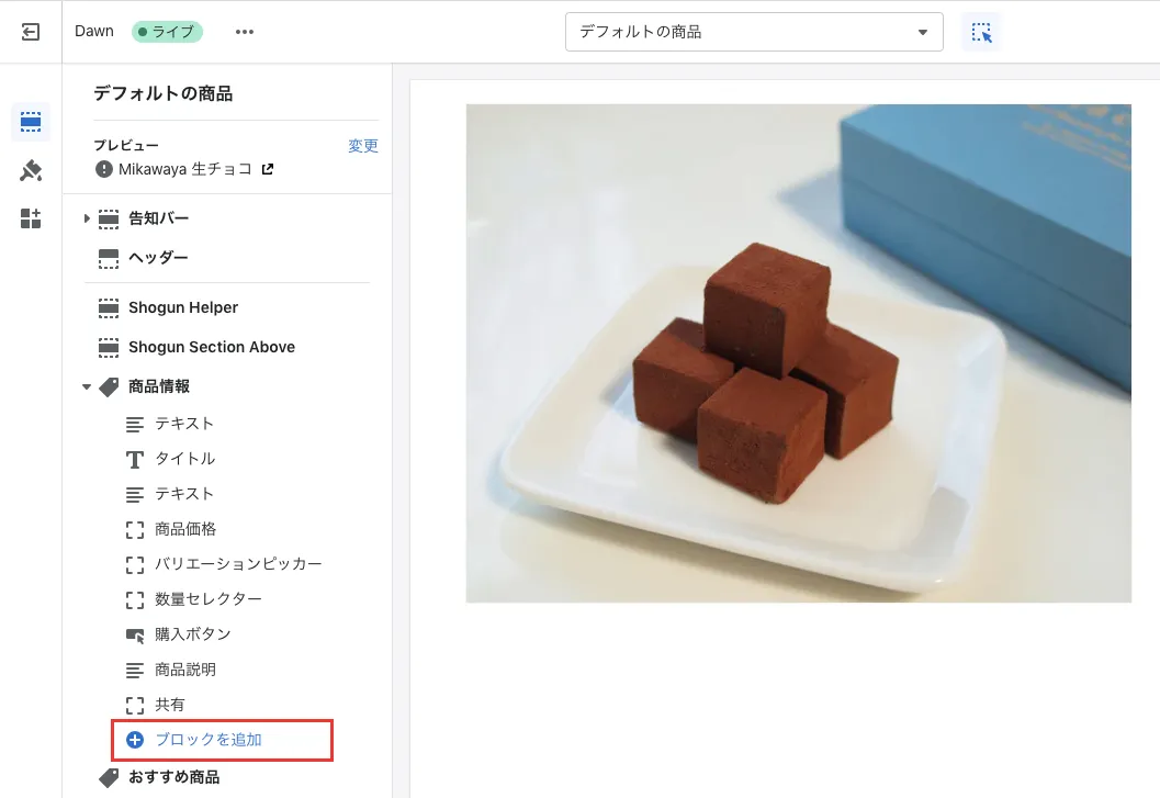 しかしながら今回のアップデートではオンラインストア2.0対応テーマ(無料・有料)全て同じアプリブロックの設置方法に統一されます。