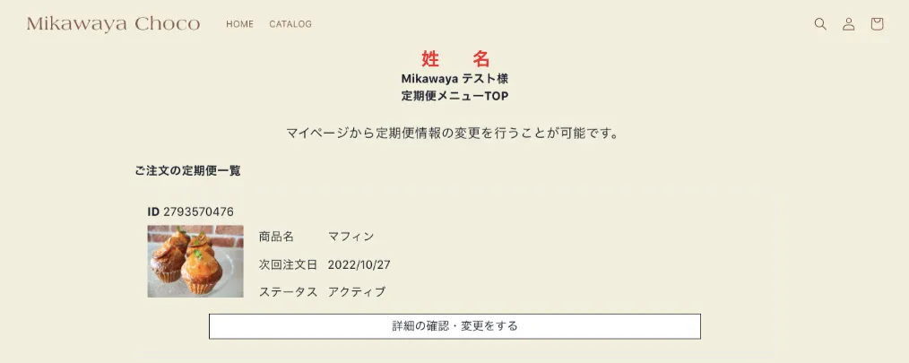 -「マイページ」と「Mikawaya>サブスクリプション管理ページ」の姓名の並び順を変更しました。