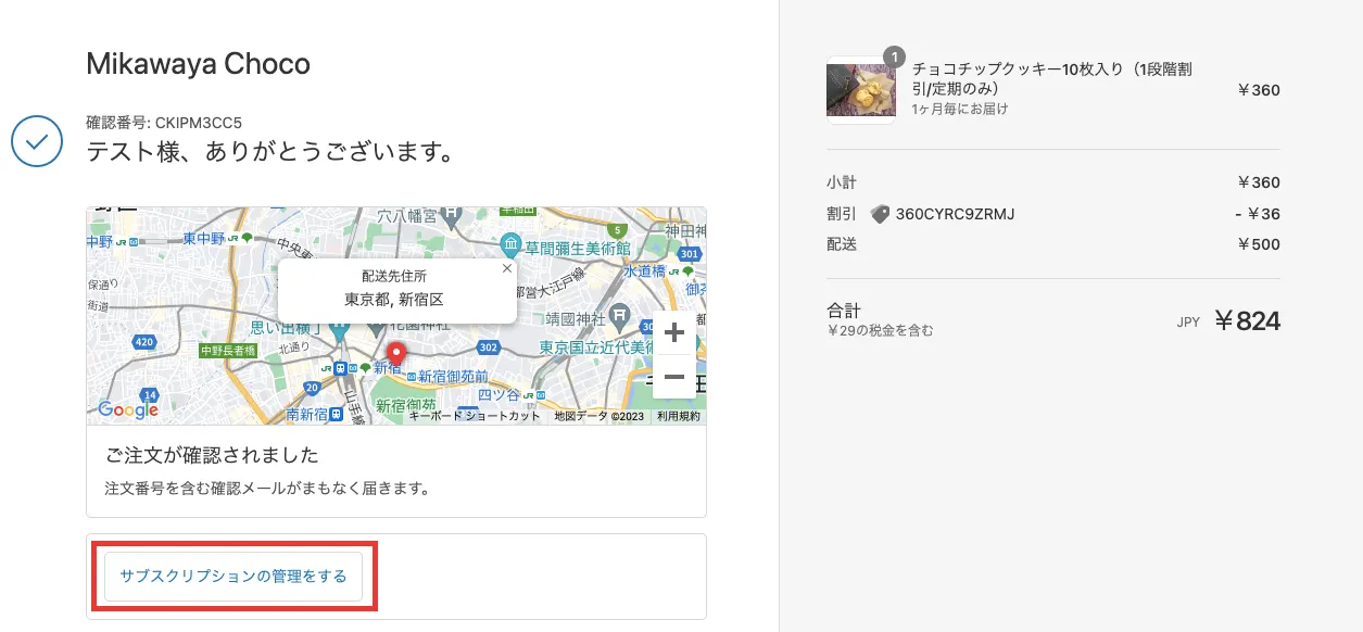 4.Shopifyサンクスページ「サブスクリプションを管理する」