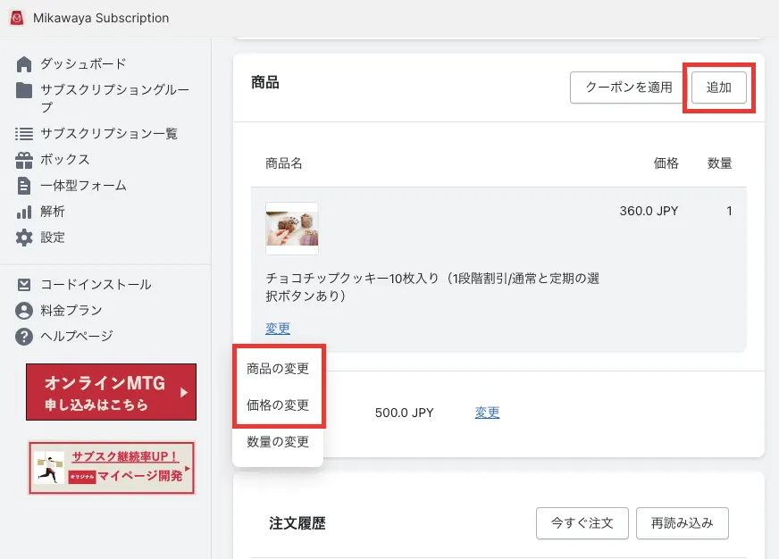 サブスクリプションマイページ(お客様側の操作)の場合