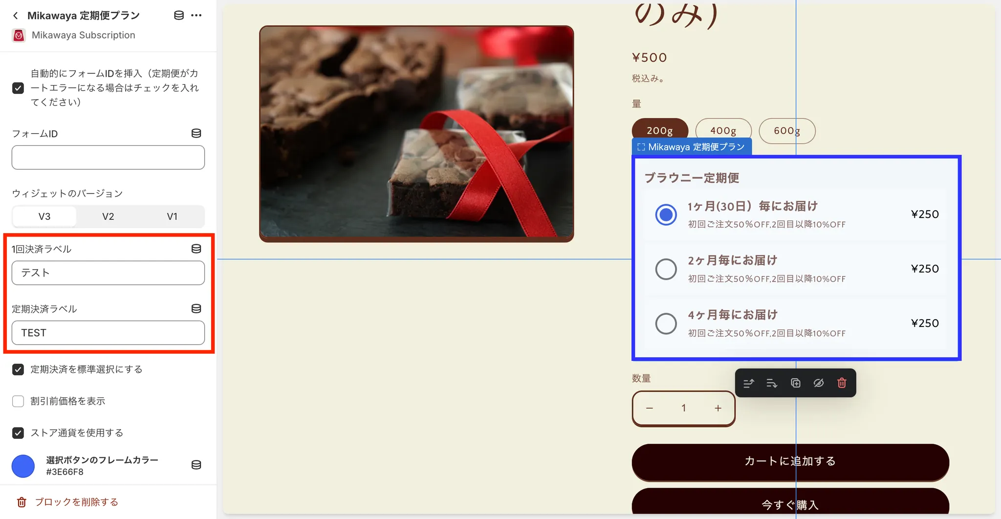 ※「焼き菓子定期便」や「1ヶ月毎にお届け」という箇所は、サブスクリプショングループの内容がそのまま適用されます。